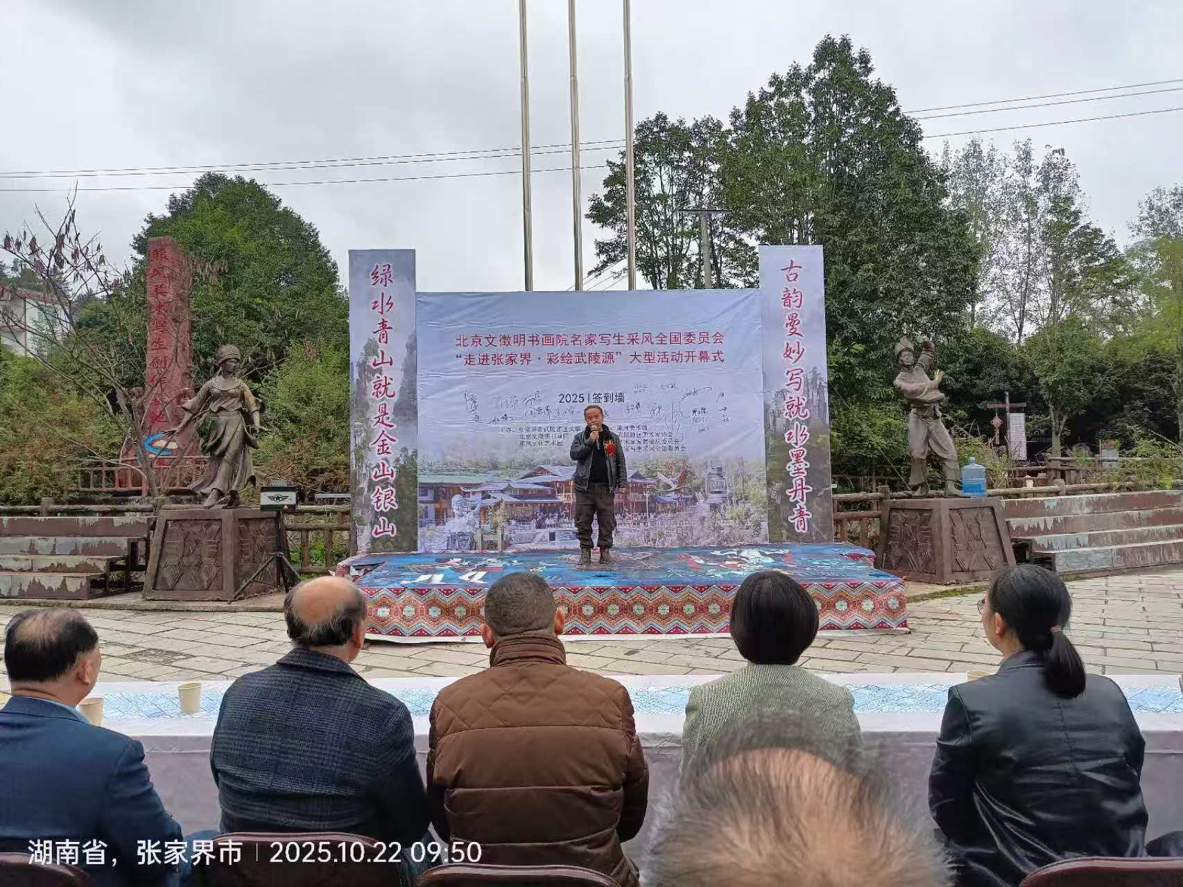 10月22日,为期10天的“北京文徵明书画院名家写生采风活动”在张家界熊风文化园启动。本次活动由张家界市武陵源区文联、北京文徵明书画院、熊风文化园联合主办,熊风美术馆、张家界武陵源区美术家协会、北京文徵明书画院名家写生采风全国委员会、艺术家论坛委员会承办。