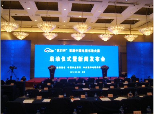 据介绍,“农行杯”首届中国电视书法大赛是由中国书法家协会、中央数字电视书画频道、中国农业银行共同主办的面向全国书法家、书法爱好者的专业赛事。本次赛事是在充分响应党和国家关于文化大发展、大繁荣,迎接党的十八大召开之际而举办的。三家主办单位达成高度一致,力求用举办大赛的方式弘扬中国书法艺术、传承中华文化。本次大赛将面向全国书法家及书法爱好者广泛征集作品,并邀请中国书法界的知名艺术家组成高水平的专业评委会,以“书画频道”及众多专业媒体、大众媒体作为推广平台,力求将本届大赛打造成为中国书法界一次具有里程碑意义的专业大赛。