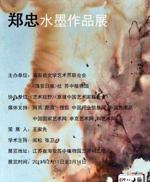 2013年2月11日,新年伊始,著名画家郑忠先生水墨作品展在江苏海安隆重举行。为海安人民奉献了一场丰盛的新年文化大餐。本次展览将延续至3月11日。
