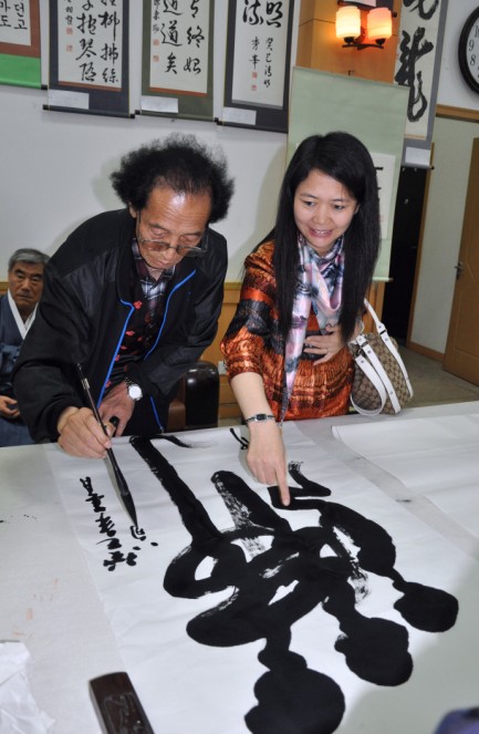 82岁的甘肃籍著名书画家张劲夫、河南籍著名书法家张茂华、韩国碑林协会会长金善源都在现场挥笔泼墨,赢得了赞许的掌声。活动期间,华夏张氏书画院名誉院长荆利斌和中国国际书画艺术协会主席张世芝女士都致以热情洋溢的欢迎词。