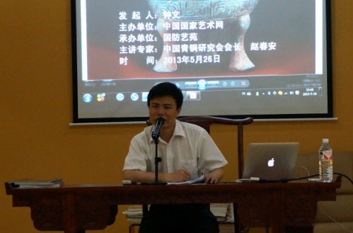 5月26日下午,由书法家钟文发起,中国国家艺术网、国防艺苑联合举办的钟文下午茶高端艺术沙龙第四期在中国人民解放军国防大学国防艺苑举行,本期“钟文下午茶高端艺术沙龙”得到中国青铜研究会会长、北京景星麟凤国际拍卖公司董事长赵春安先生的大力支持,并在现场与出席沙龙的嘉宾分享了青铜知识及几十年的收藏心得,让大家受益匪浅。本期沙龙由发起人、书法家钟文先生亲自主持。