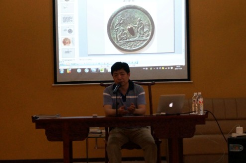中国青铜研究会会长、北京景星麟凤国际拍卖公司董事长赵春安在现场讲授青铜知识和收藏故事