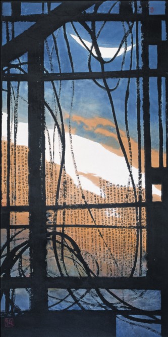 周韶华作品-大漠浩歌——这里不是梦 纸本水墨 247cm×123cm 2000年 中国美术馆藏