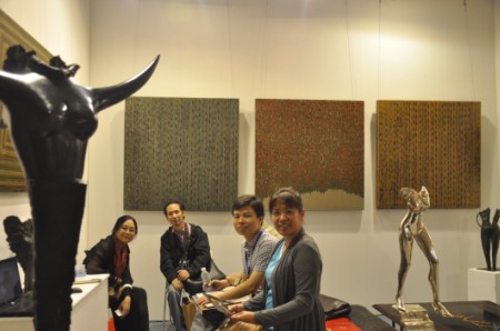 中国国家艺术网讯:9月13日,第十六届北京国际艺博会在北京展览馆隆重开幕,中国女性陶瓷艺术家的代表人物、广州美术学院副教授、美国国家陶瓷教育委员会成员张温帙女士携其现代漆画作品亮相第十六届北京国际艺博会,因其作品兼有艺术性、时尚型、实用性,甚至放在家里可以当家具坐等不同于一般艺术品的功能,成为本次展会一大亮点。