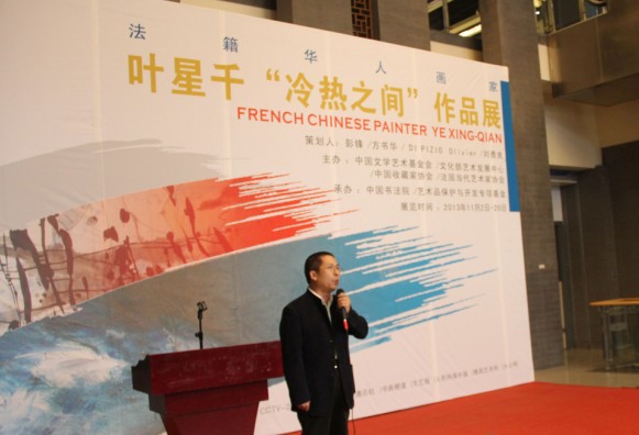 中国国家艺术网讯(钟文 报道):深秋的北京略带一丝凉意,由中国文学艺术基金会、文化部艺术发展中心、中国收藏家协会、法国当代艺术家协会共同主办,中国书法院、艺术品保护与开发专项基金共同承办的“冷热之间”——法籍华人画家叶星千作品展于11月2日下午在北京国粹苑中国艺术研究院中国书法院展览馆如期拉开帷幕,来至全国各地的朋友和国际友人在这里共同祝贺这位旅居法国32年的朋友此次精彩亮相于北京。此次共展出叶星千先生近几年来所创作的抽象油画和抽象水墨作品80余件,本次画展由彭锋、 DI PIZIO Olivier(法国)、方书华、刘勇良共同策划,展览将持续到11月20日。