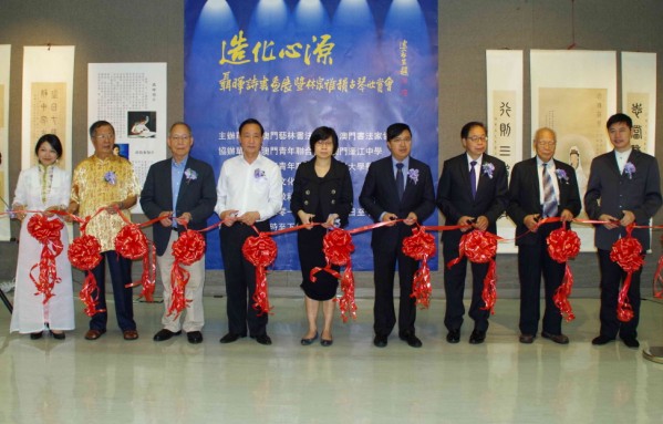 澳门基金会教科文中心主任梁雅桃,澳门青年联合会会长马志毅,濠江中学校长尤端阳,美协会长黎鹰,街总荣誉会长吴仕明,港澳台中华文化艺术协会会长李汝匡,澳门书法家协会主席连家生为开幕式剪彩