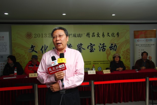 琉璃厂古玩艺术品交易网总经理蔺炜现场接受媒体采访