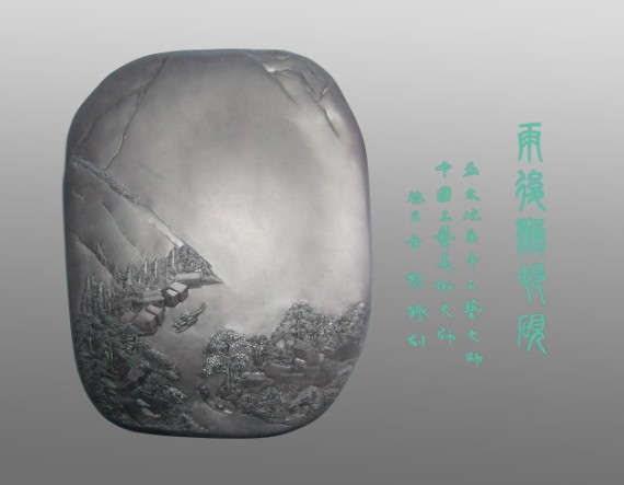 黎铿大师5-雨后渔村砚