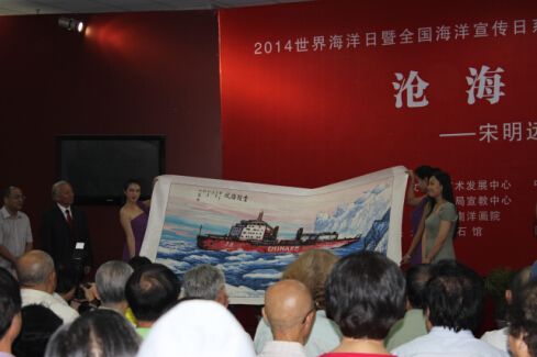 中国国家艺术网讯(钟文 报道):5月28日上午,作为2014年世界海洋日暨全国海洋宣传日系列活动之一,《沧海颂——宋明远中国海洋画作品展》在中国人民革命军事博物馆隆重举行。党政军各级领导和嘉宾数百人出席了开幕式并参观了展览。