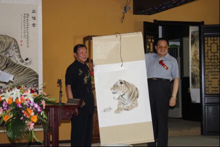据国防大学国防艺苑总经理李学然介绍,近年来,国防艺苑推出了一批在国内具有较高影响、作品具有高度学术价值和市场价值的艺术家,王华峰先生就是其中一位,王华峰先生作为冯大中的入室弟子,他的工笔虎画法不仅传承了冯大中先生画老虎的众多优秀技法,还在长期的创作实践中闯出了一条自己的路子,形成了自己独特的工笔虎画风,受到许多藏家的喜爱。