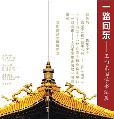 中国国家艺术网讯:“我深知不断地探索与耕耘才能创造出书法艺术的新成就,这将是我奉献给社会最美丽的果实。”书法家王向东先生这样说道。8月23日,“一路向东”王向东国学艺术书法展在北京孔庙与国子监博物馆彝伦堂开幕。