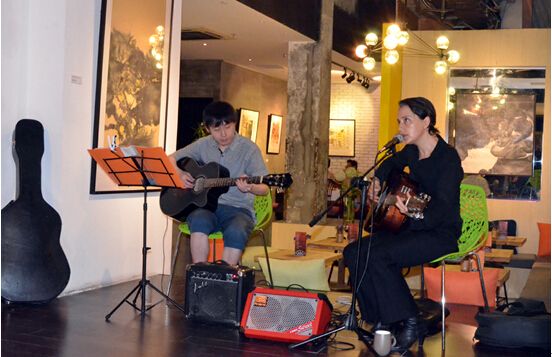 澳大利亚音乐家Catline为郑忠水墨展助兴。