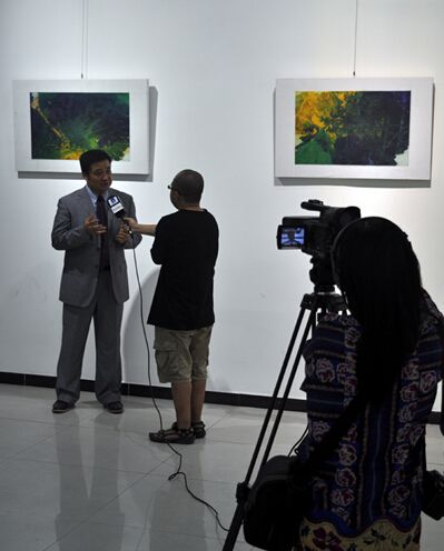 《中国经济文化研究院》院长张志生先生接受央视记者的采访,就郑忠水墨作品的创新、图式、色彩、水墨的流变,艺术语言的独特性谈他的审美感受与郑忠水墨作品的美学价值:郑忠先生经历了兵、学、工、商、艺,先后在五所美院学习、深造,客座西安美院,入驻深圳观澜版画基地,三十年如一日,在艺术的道路上孜孜不倦。特殊的经历,独特的心灵感受以异于常人之法,造异于常见之境。他的异境,有山川大美,更有天风浩荡。或寒荒、或空灵、或绚丽、或清新。其异境别开天宇,变化莫可揣测。难得的是,他这异境飞扬又不失含蓄。有放纵,更懂节制。他的内在应该是受儒家文化的影响。他的画,体现的是东方美学与中国的文化精神。