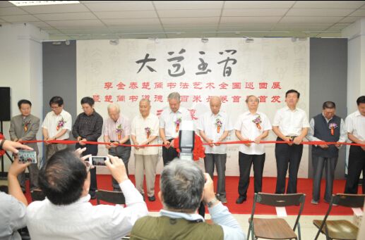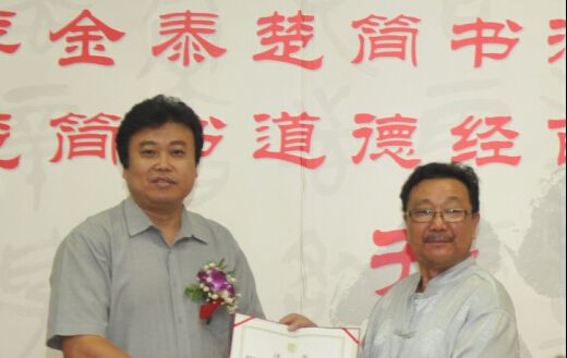 中国国家艺术网讯(钟文 报道):为弘扬中华民族优秀传统文化,支持祖国的慈善事业,展示李金泰先生在楚简书法艺术方面的成就,由国际中国书画家交流促进会与世界艺术收藏联合会、中国教育网络电视台书画台、中国楚简书法研究院等单位联合主办的“大道至简——李金泰楚简书法艺术全国巡回展北京首展暨《楚简书道德经》百米长卷首展首发式”,于2014年9月13日,在北京大学图书馆隆重举行。本次活动由中共湖北省委宣传部、中国新闻社湖北分社协办。北京大学书法艺术研究所为学术主持单位,北京大学王岳川教授为学术主持。