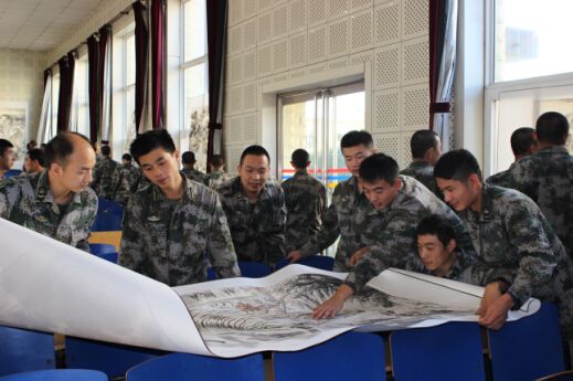 官兵近距离欣赏王华峰老师作品