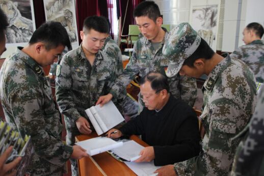 王华峰老师为官兵签名赠送画册