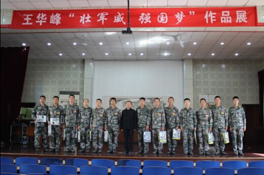 中国国家艺术网讯(钟文 报道):2014年10月5日上午,在举国上下欢度国庆佳节之际,王华峰“壮军威、强国梦”作品展在解放军北京某部隆重举行。为国庆假期坚守在岗位的基层部队官兵送去文化大餐,部队官兵数百人出席了开幕式并参观了展览,受到部队官兵的一致好评。