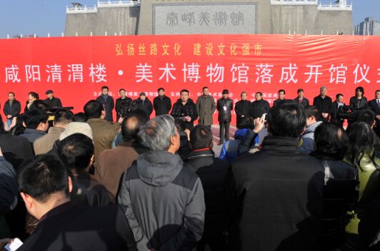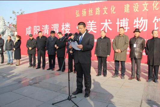 清渭楼美术博物馆馆长郭峰在致辞中表示,清渭楼美术博物馆的建设得到了国家文化部、省、市各级政府和各位领导以及社会各界的高度重视和大力支持。在工程建设期间,中共咸阳市委姜锋书记、咸阳市人民政府卫华市长等领导先后多次带领有关部门深入美术馆考察调研、协调解决工程建设所遇到的困难和问题。清渭楼美术博物馆试运行一年来,全国政协领导、国家文化部、国家发改委、省委省政府以及省文化厅、省文联、省美协、省文物旅游局等多位领导先后莅临美术馆考察指导,国家文化部、省文化厅已确定我馆为2016年全国文化艺术节书画展的主展馆。