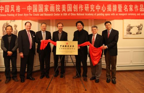 中国国家艺术网讯:纽约时间2015年1月15日,“中国国家画院美国创作研究中心揭牌活动”在纽约举行。与揭牌活动同时还展出了“中国风格-中国国家画院名家作品展”,展览展出了杨晓阳、张江舟、张立柱、邢少臣的30余件中国画作品。此次活动由中国国家画院 、美国中国文化艺术基金会主办,中国国家画院美国创作硏究中心、金泓文化(美国)发展有限公司承办,中国驻纽约总领馆支持。
