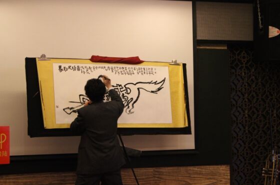 开拍前,集词曲书画演奏于一身的奇才高贵强进行了创作表演。
