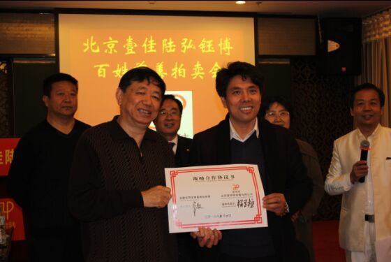据北京壹佳陆拍卖公司董事长杨玉柱介绍,为进一步落实国家文化战略,中国第一家“百姓拍卖”、第一家“周周拍卖”、第一家“慈善拍卖”——北京壹佳陆拍卖有限公司与北京弘钰博古玩城强强联手,在北京弘钰博古玩城开设百姓拍卖大厅,本次拍卖是在这里举行的首次百姓慈善拍卖会,今后每周六上午都将在弘钰博古玩城举行百姓拍卖。同时,本月25日还将在北京南四环城外城举行大型百姓拍卖活动,每月一次。