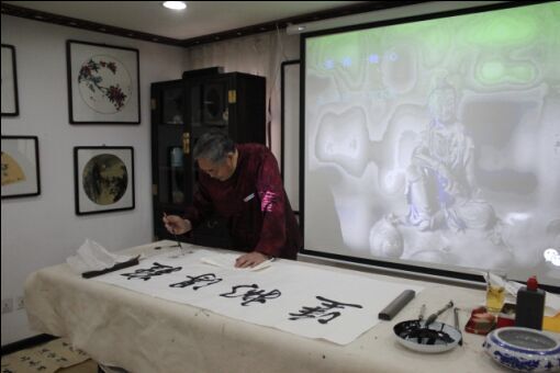 著名书画家葛呈祥老师在揭牌笔会上创作