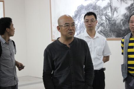 王林旭先生陪同嘉宾参观画展、讲解画作