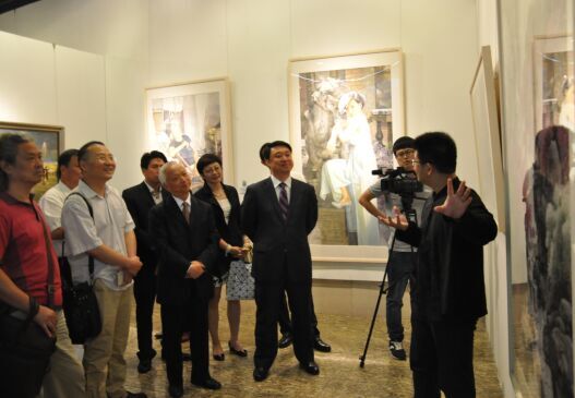 主办方领导和嘉宾一起参观书画汇