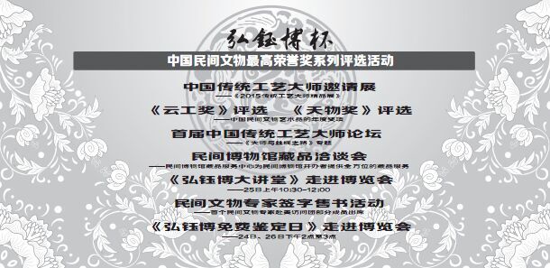 据了解,配合首届中国传统工艺大师论坛——《大师与丝绸之路》的举行,第十八届北京中国古玩艺术品博览会将推出《中国传统工艺大师作品精品墙》,邀请专家现场评选中国传统工艺大师作品的《云工奖》。同时还将邀请部分知名传统工艺大师亮相《大师与丝绸之路》展位。