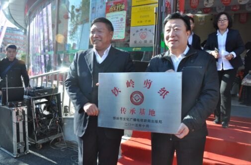 中国国家艺术网讯:10月28日,标志着辽宁省第一家剪纸文化主题邮局——“铁岭剪纸文化邮局” 在铁岭市邮政局首山支局正式成立。铁岭邮政公司时德胜总经理,从铁岭市文广新局副局长杨雨和手中接过“铁岭剪纸”传承基地的牌匾。