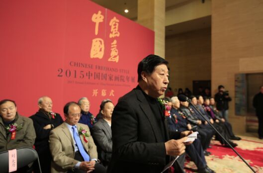 中国国家艺术网讯(钟文 报道):2015年12月27日上午10点30分,“写意中国——2015中国国家画院年展”开幕仪式于在中国美术馆举行。此次展览利用中国美术馆的全部展厅,展出了包括国画、书法篆刻、油画、版画、雕塑、公共艺术在内的近300位艺术家的700余件作品,既是中国国家画院启动“‘一带一路’国际美术工程”以来创作成果的阶段性展示,也是庆祝中国国家画院建院三十五周年的重要献礼。展览由中国国家画院主办,中国国家画院创作研究部、国画院、书法篆刻院、油画院、版画院、雕塑院、美术研究院、公共艺术院、青年画院、艺术信息中心承办,展期将从2015年12月26日至2016年1月5日。