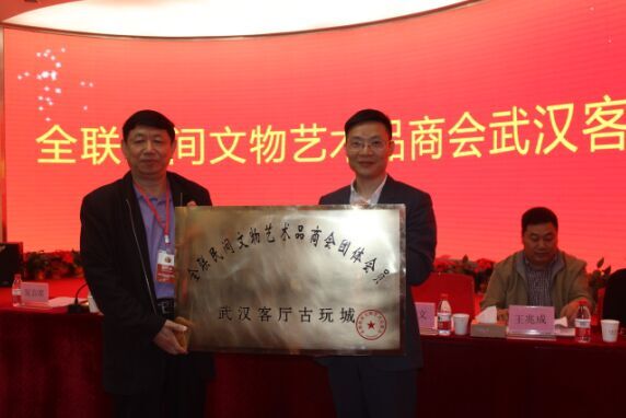 全国工商联民间文物艺术品商会会长宋建文为团体会员武汉客厅古玩城授牌
