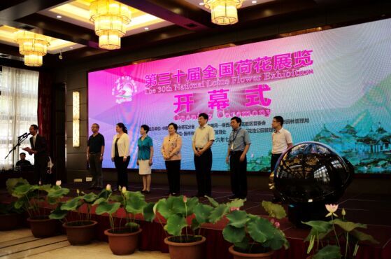 中国国家艺术网讯(袁艳 文/ 彭建清 摄影):作为此次展览主会场的瘦西湖享有“园林之盛,甲天于下”之美誉,其中的莲花桥、莲性寺、白塔早就与莲结缘,无论是文化寓意还是布局构思,舞步彰显其美妙和谐,祥和静谧。。。。。。。中国花卉协会荷花分会会长陈龙清在7月28日,瘦西湖风景区举办的第三十届全国荷花展开幕式上如是说。全国政协委员、全国政协人口资源环境委员会副主任、中国生态文化协会会长江泽慧,及来自港、澳、台以及美国、澳大利亚等国家的代表与全国27个省市近400余名业内专家齐聚扬城,共同感受“一水回环杨柳外,画船往来藕花天”的荷之盛宴。