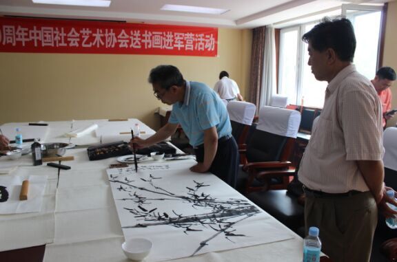 著名书画家高祯卿、郑国峰画的竹子和荷花,劲健清雅。戴玉春的书法,蒋志强的国画都受到了官兵的一致好评。