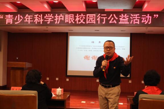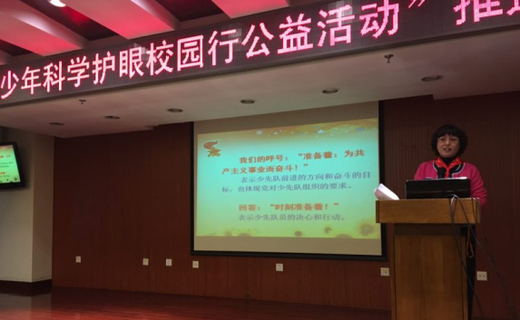 孟宪巧宣读“科学护眼校园行”志愿者倡议书