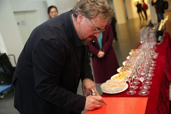 中国国家艺术网讯(李飞 报道):2017年3月20日,意大利著名艺术家RinoSquillante在华首次个展“内在”在北京理工大学艺术厅隆重开幕,本次画展由北京中意坤学校、那不勒斯美术学院、ACG国际艺术教育、全欧艺盟主办,北京理工大学设计与艺术学院、北京理工大学党委宣传部协办,侍酒师协会,绿鑫阳光酒业进行赞助。意大利教育中心负责人邢建军博士、ACG国际艺术教育创始人、微观直播创始人、比格鱼创意社区创始人、央视数字艺术设计专家字文莉、北京中意坤学校校长石莹、北京理工大学设计与艺术学院副院长王东声、北京交通大学建筑和艺术学院张澎教授、首都师范大学书法学院马方胜教授出席了开幕式并进行了讲话。