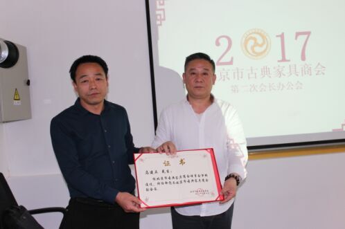 北京市古典家具商会会长邬涛为姚文立颁发任命书