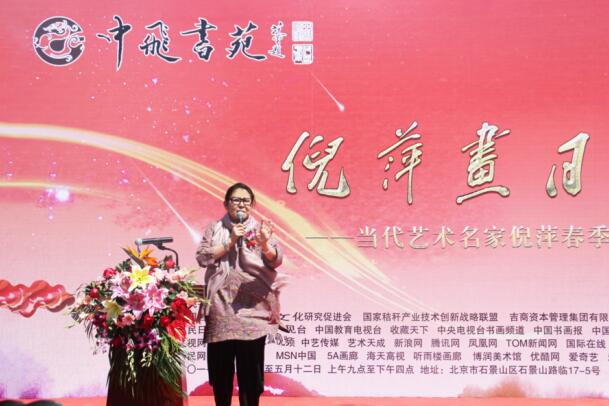 画展开幕当天,中飞书苑院长、中国吉商协会会长、中华彭祖文化研究促进会会长、国家秸秆产业技术创新战略联盟理事长彭飞代表活动的主办方致辞,他在讲话中高度赞扬了倪萍的艺术成就,详细介绍了本次画展的精彩亮点,深情回顾了中飞书苑的发展历程,表示未来中飞书苑将携手更多的名人名家为广大艺术爱好者、收藏家奉上更多兼具观赏性和收藏性的艺术盛宴。中央电视台著名主持人、演员、作家倪萍随后发表了热情真挚的讲话,和大家分享了她艺术创新的心路历程,鼓励每一个普通人都拿起画笔,描绘生活、抒写日子。邮电部原副部长常延廷、军事科学院军建部原副部长杨春长、中国人民革命军事博物馆原馆长郭得河、北京市石景山区文化委员会党委书记杨文钢、黑龙江省美术家协会名誉主席贾平西等嘉宾在开幕式上致辞,对中飞书苑在“传播书画艺术,弘扬传统文化”所做的贡献予以肯定。