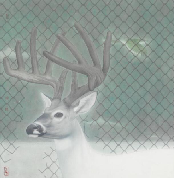 《白鹿》欧阳光 纸本工笔 2015年 65X65cm