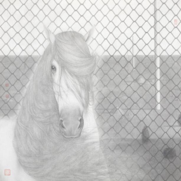 《眺望》欧阳光 纸本工笔 2015年 65X65cm