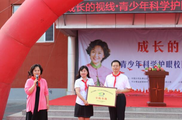 为五原县第四小学颁发“科学护眼实践基地”铜牌